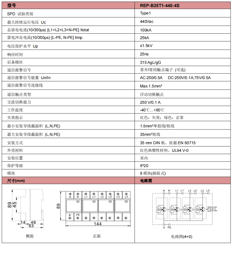 ●Ⅰ級插拔式電(diàn)源電(diàn)湧保護器(qì),實現(xiàn)一(yī)、二級零距離(lí)安裝,無需退耦電(diàn)感;♣